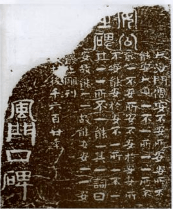 安公之碑大沙門僧安不安所 安安所不能安大道一不一所一一所不 能一不安所安不安於安安所不安能安 於安不一所一不一其一一所不一能一 其一詞曰安故能一一故能安安一一 安巖上雕刊 □□後千六百廿年 風門口碑
