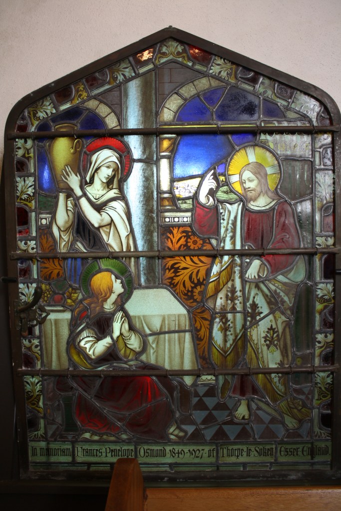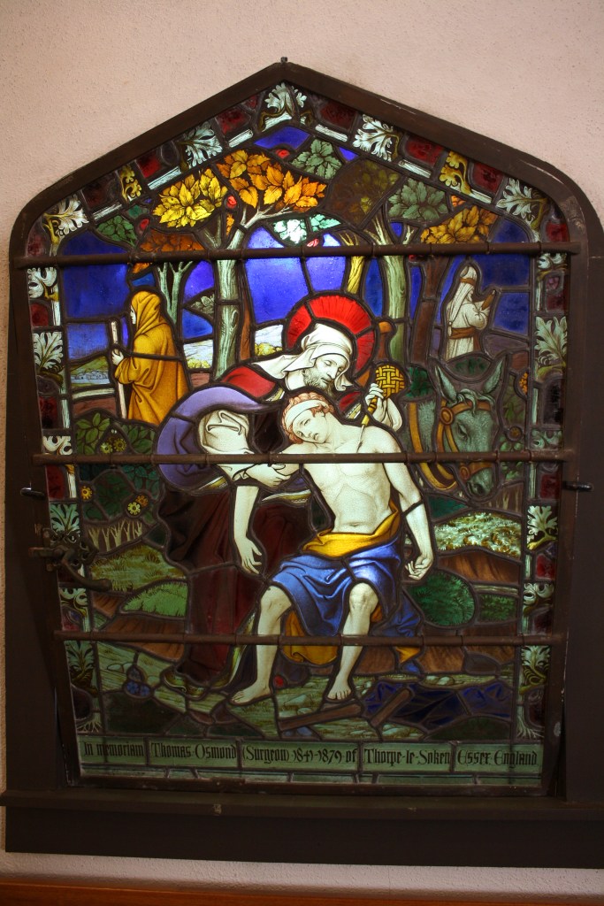 I (and he) assumed they had been bought and moved here from some other church, perhaps in England given they are dedicated to the memory of a surgeon and his wife from the Essex village of Thorpe-le-Soken. It wouldn’t have been uncommon in the early decades of the 20th century, when well-to-do Americans were buying art and architecture in Europe and shipping it back home.